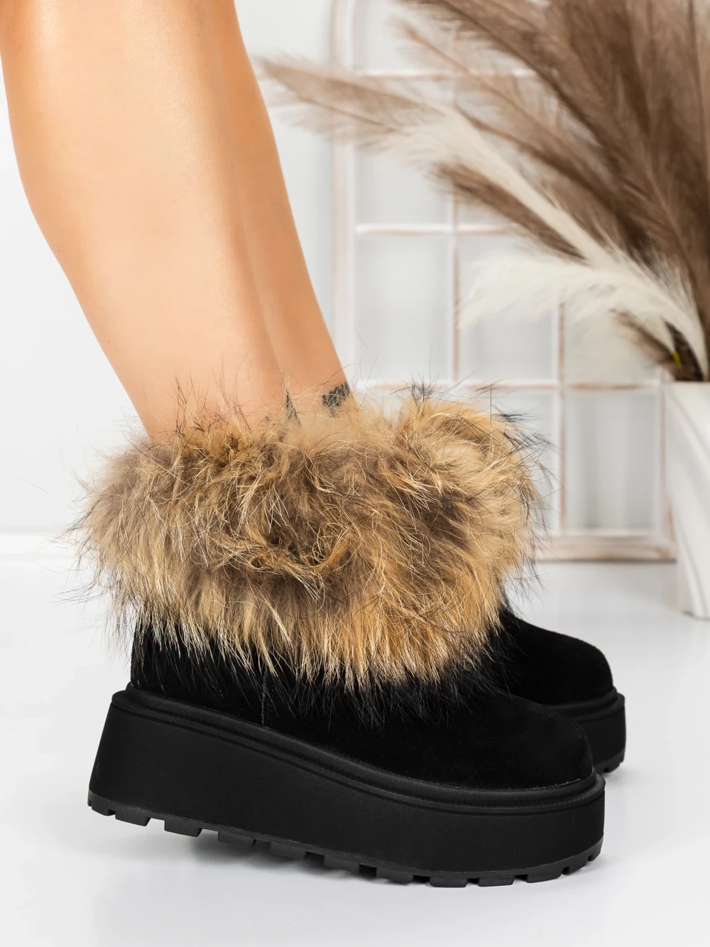 Ghete Dama cu Platforma 5W71 Negru | Pantoful