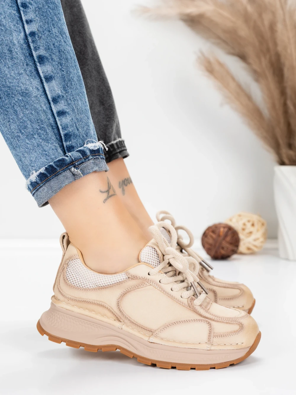 La MeiMei găsești Pantofi Sport Dama din piele naturala 10018 Crem | Franco Gerardo. Culoarea Crem vibrant, împreună cu materiale de calitate și design modern, te vor impresiona!