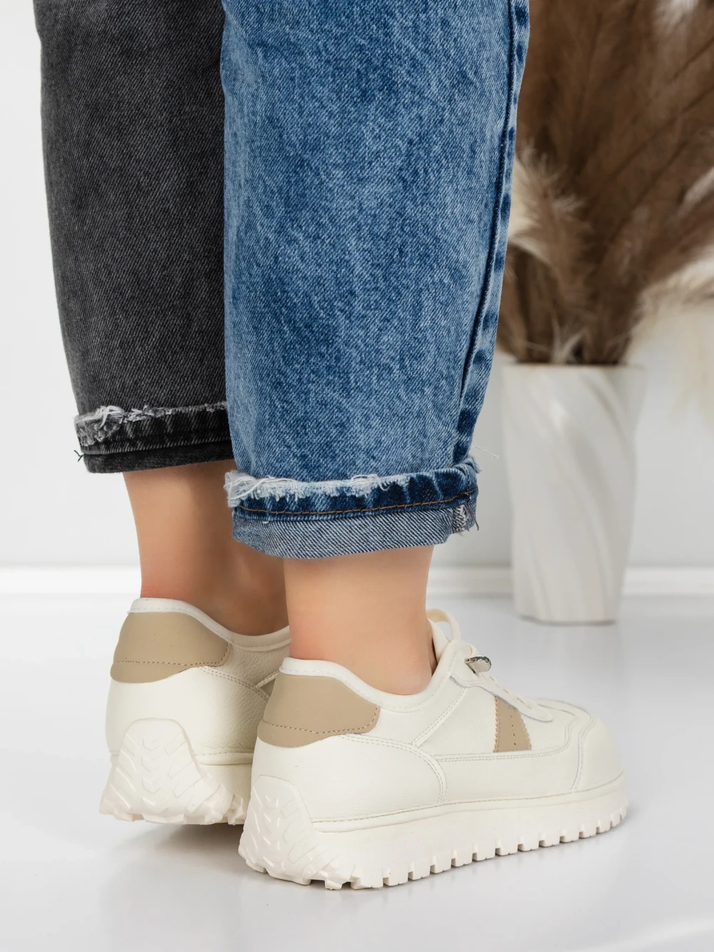 Pantofi Sport Dama din piele naturala HY2986 Crem-Gri | Franco Gerardo