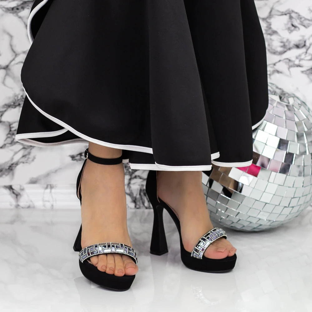 Sandale Dama cu Toc subtire si Platforma 2KV72 Negru Mei