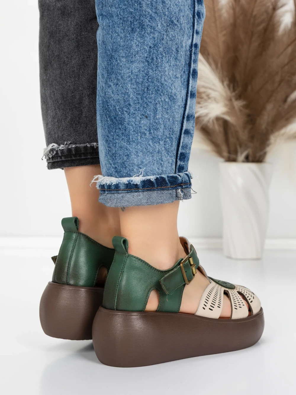 Sandale Dama cu Platforma 10682 Crem-Verde | Advancer
